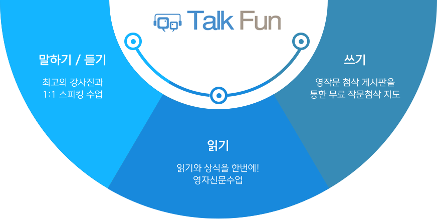 토크펀은 영자신문, 디베이트, 리딩, 피닉스 등 수강생에게 폭넓은 수업 컨텐츠를 제공합니다.