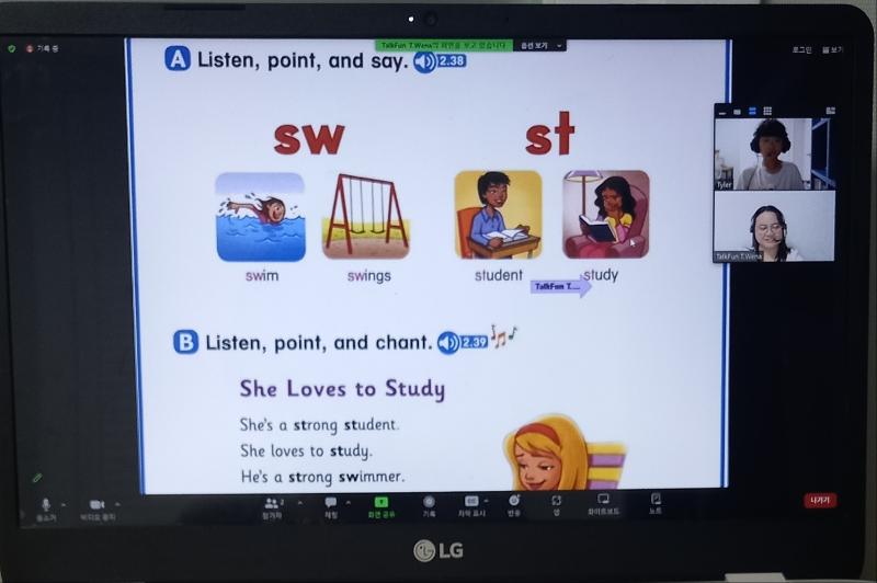 숙제를 하다가도 토크펀시간이 되면 컴퓨터를 스스로 켜네요~ 일주일 3번이지만 지루할 틈 없이 시간이 지나간다고 합니...