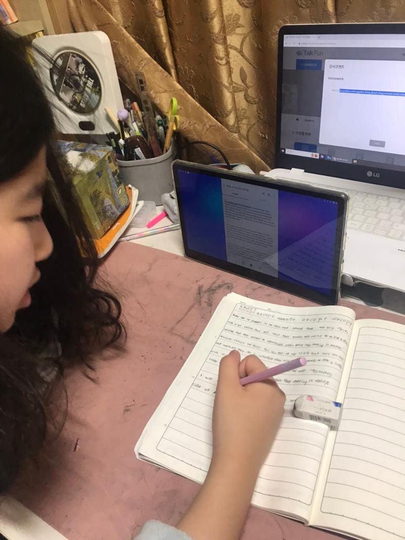 저녁 시간에 했던 토크펀 수업을 아침으로 옮기게 되었습니다. 아이가 처음에는 좀 어색하고 피곤해 하던데, 이제는 자연...