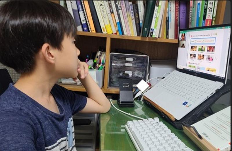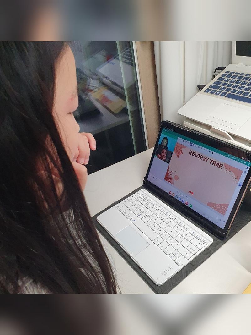 수업 전 숙제도 하고 있고요. 영어 수업 좋아해요. 숙제하는 시간도 아주 짧긴 하...