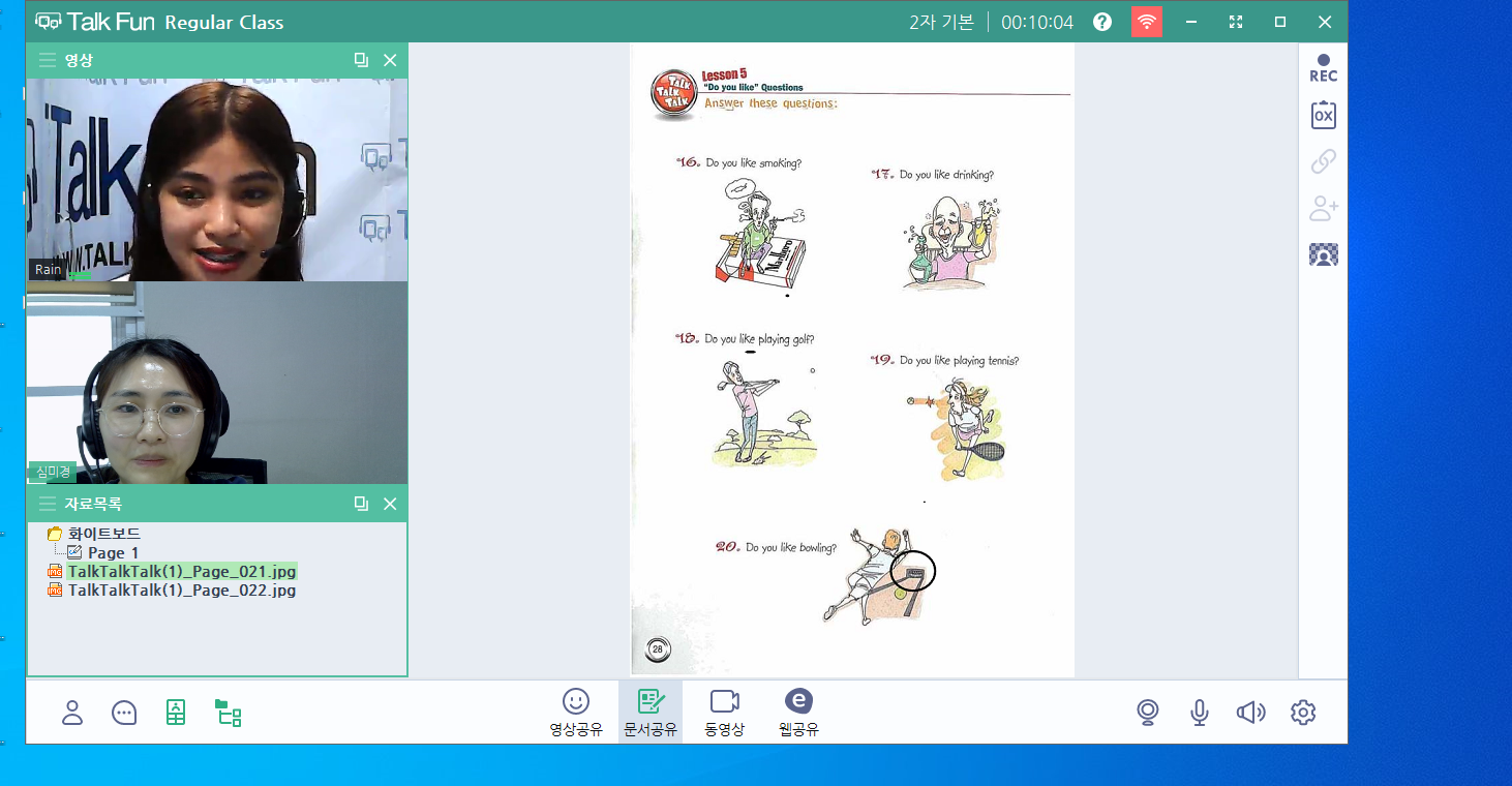 성인 화상영어 하고 있어요. (Rain teac...