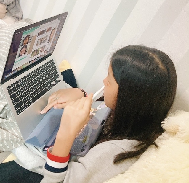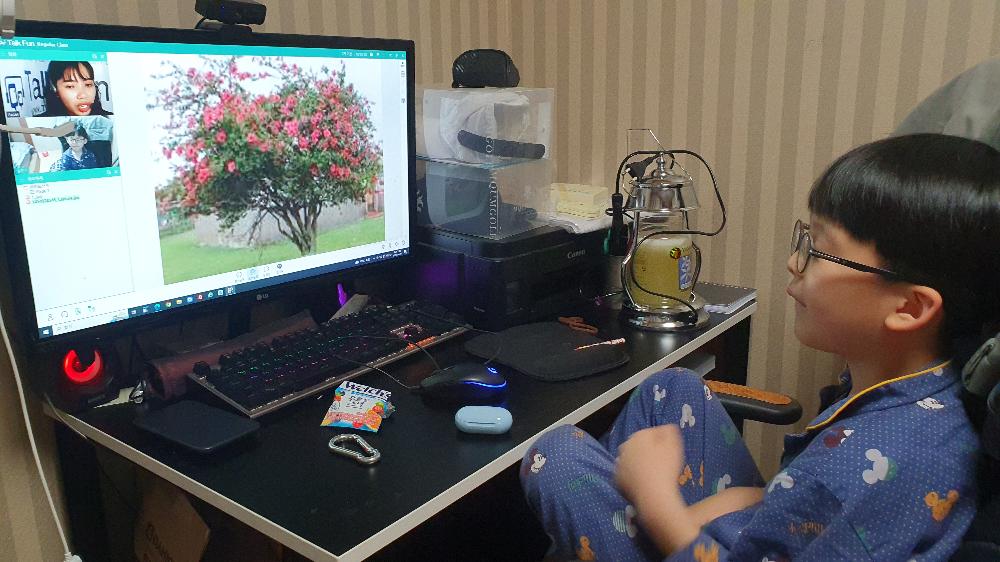작년 4월 경부터 수업 시작했어요. 즐겁게 수업하고 있어요. 영어실력이 얼마나 늘었는지는 잘 모르겠어요. 왜냐면 엄마...