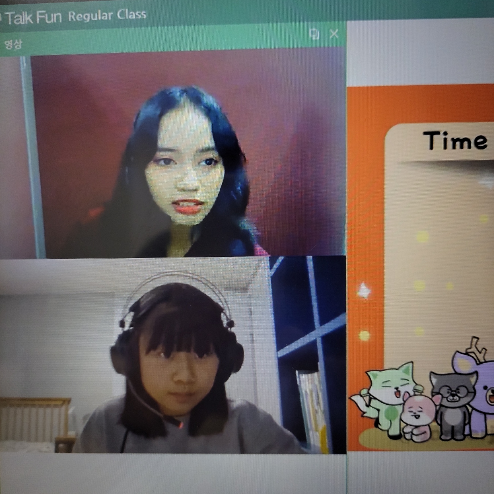 토크펀 수업시간은 즐겁습니다. 이렇게 회화수업을 꾸준히 하다 보면 실력도 조금씩 늘겠지요? 영어공부시간을 많이 늘려...