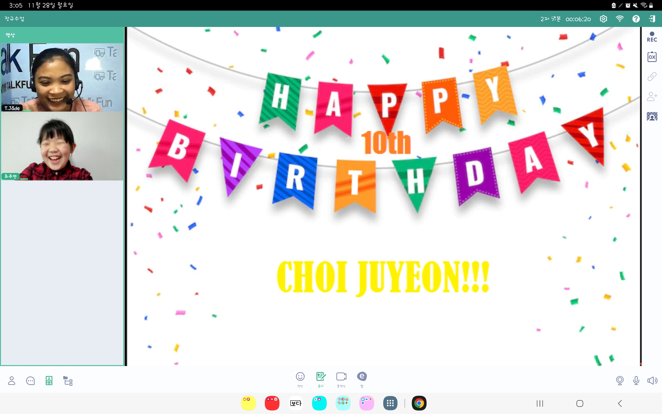 Jade teacher과 함께 하는 수업시간이 너무 기다려 집니다.내일이 제 생일 이라고 생일 축 하를 받는 제가 너...