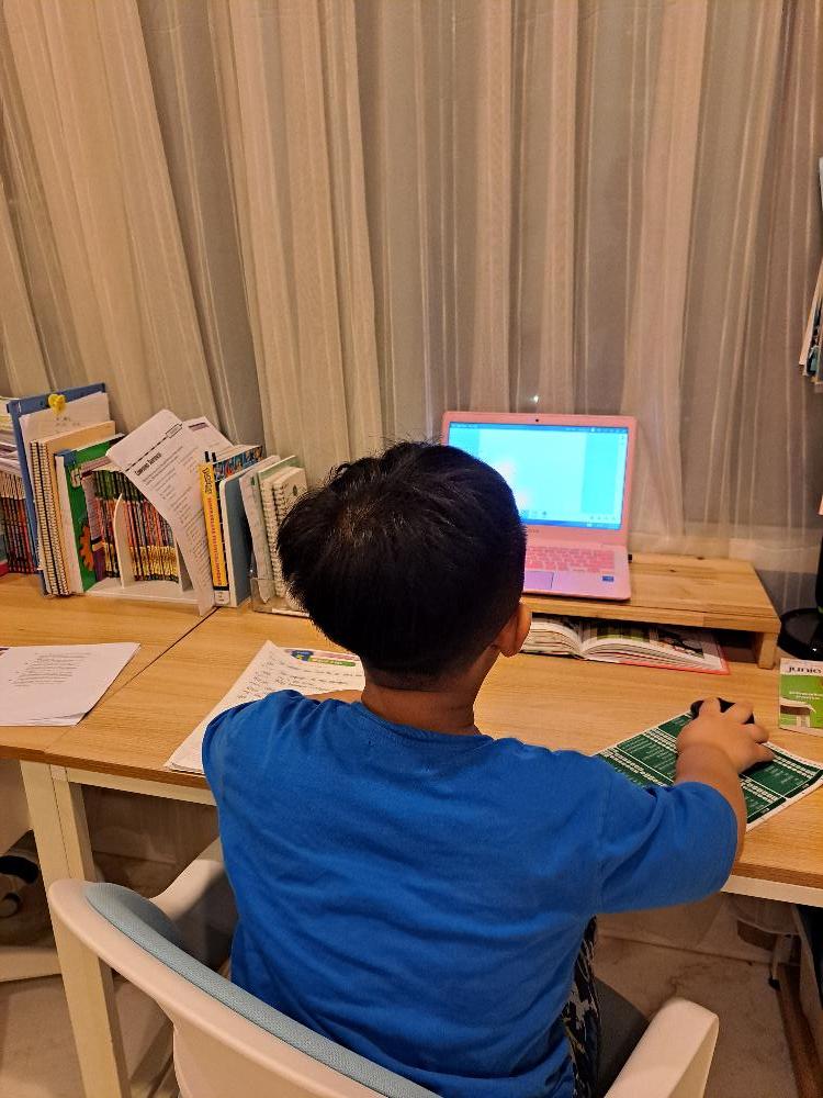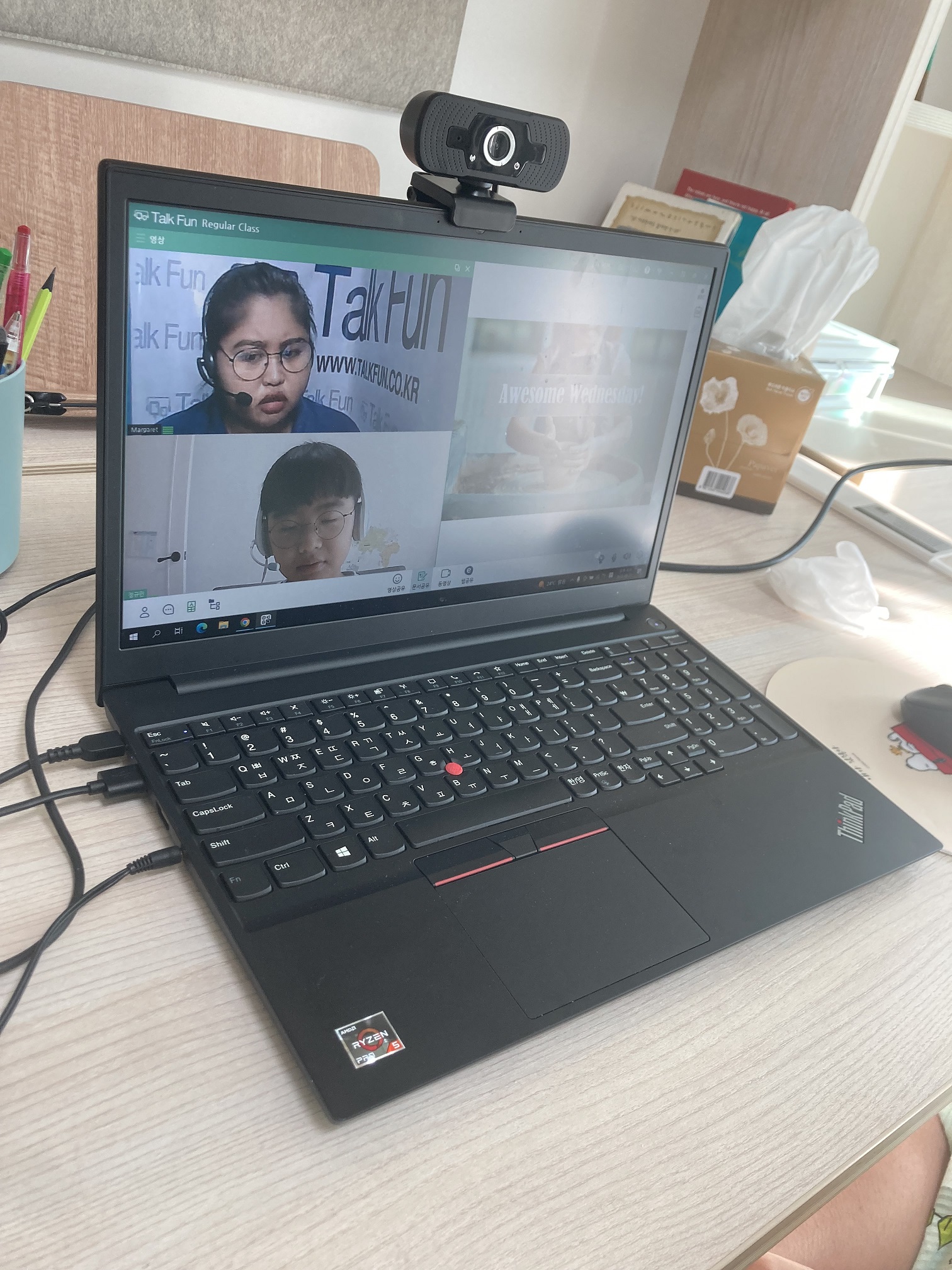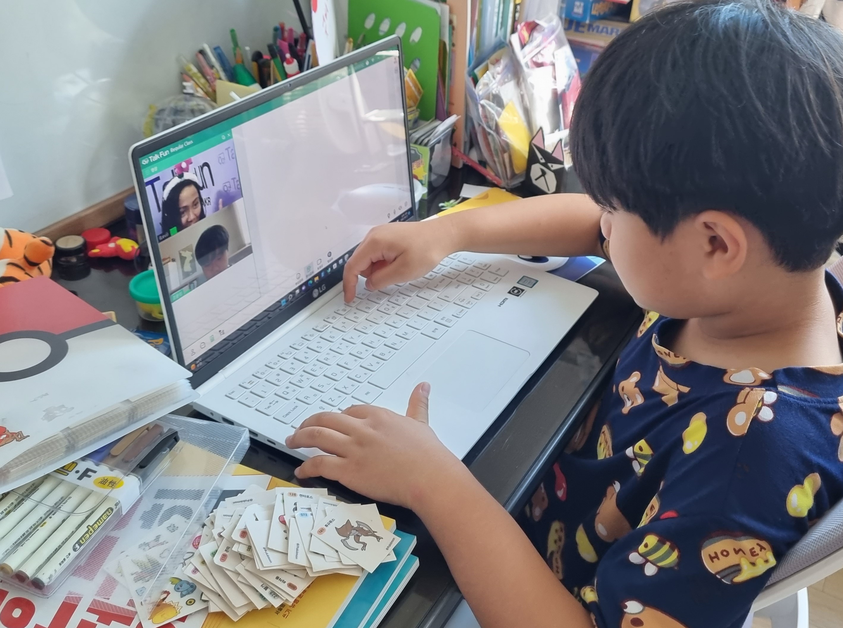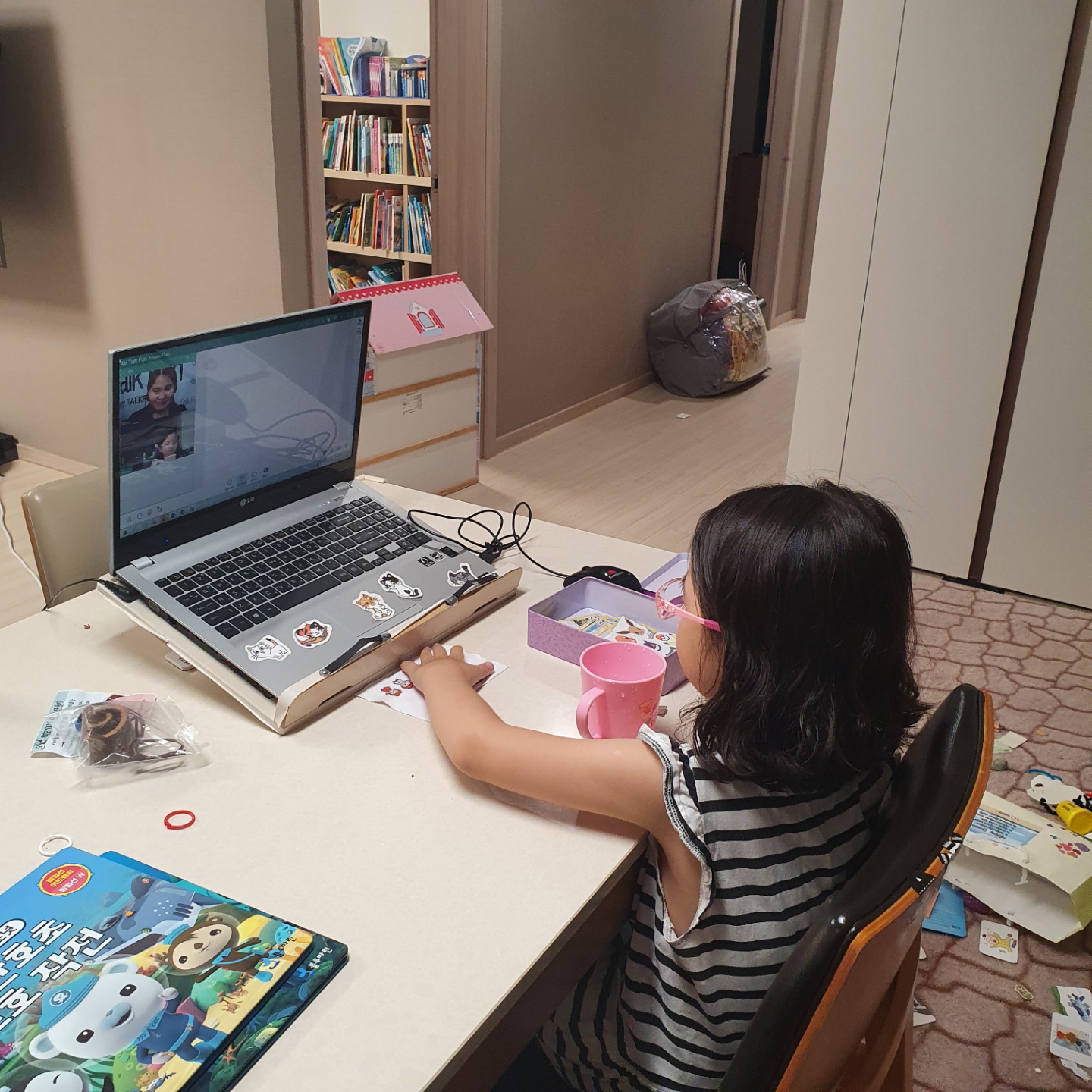 토크펀 수업 있는날에는 아이가 시간에 맞추어 노트북을 켜고 자리를 정돈하며