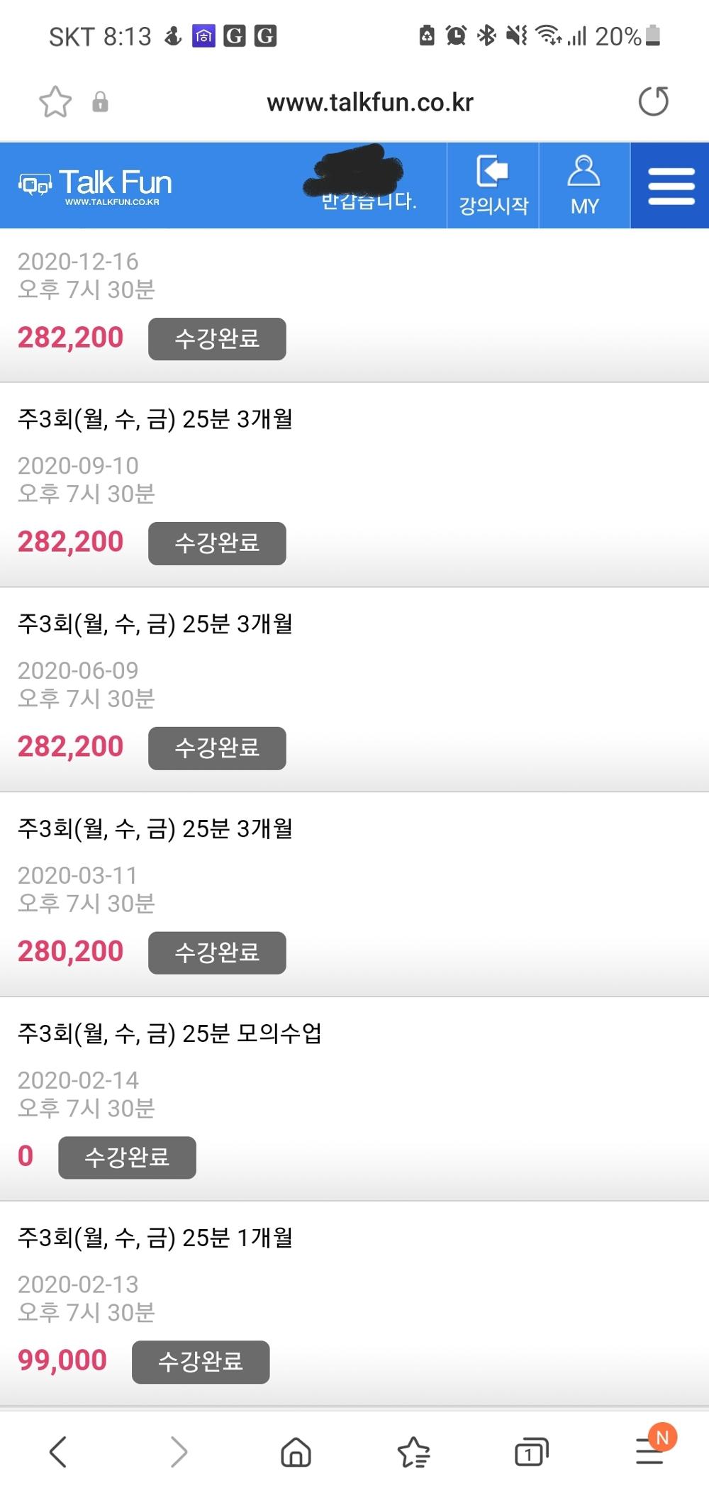 코로나로시작된 수업을 장기로수강할꺼라생각못했어요 지금은 토크펀에서 회화와 발표위주의 수업을듣고, 학원에서는 문법과 ...