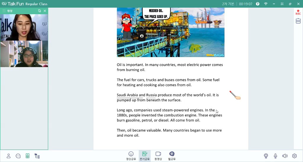 코로나 직전에 일주일에 두번 시작한 토크펀이 벌써 3년째 되가네요. 비대면수업이라 안전하게 수업할수 있어 매우 좋습...