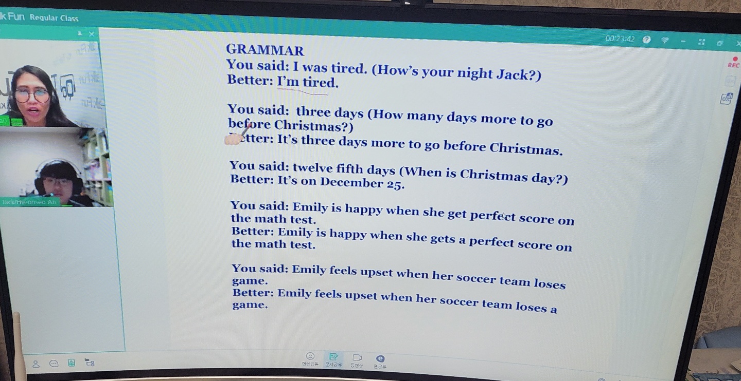 벌써 토크펀을 한지 4개월이 되었습니다. 수업 시작 후 15분 정도는 오늘 기분이 어떤지, 뭘 먹고 했는지 등의 소통...