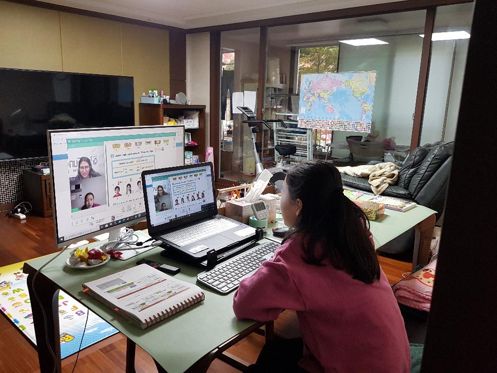 여러개의 화상회의 레벨테스트와 체험수업 후 토크펀으로 결정 후