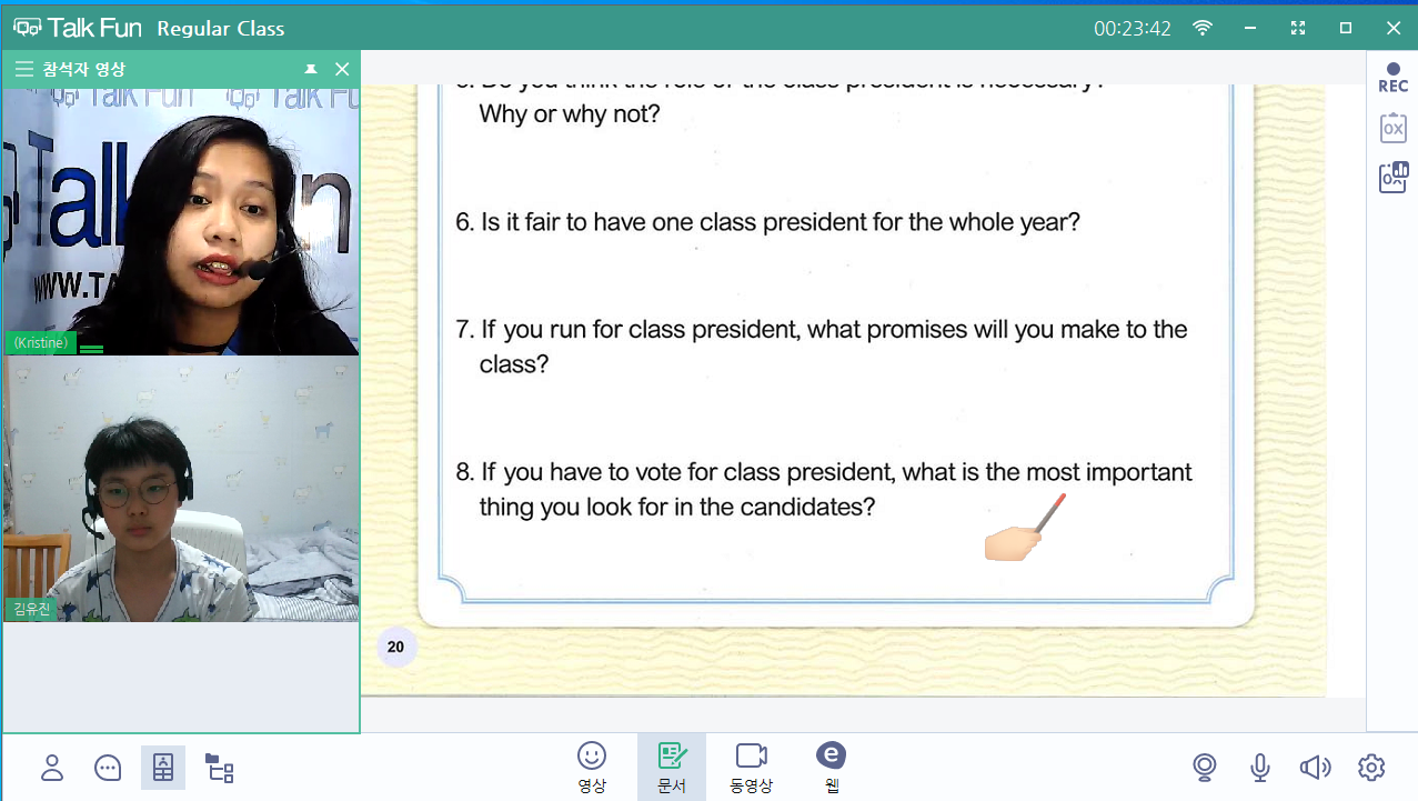 일주일에 두번밖에 못해서 수업을 더 늘리고싶지만 토크펀의 인기로 시간을 늘리기가 쉽지않네요. 꾸준히 하고있는데 ...