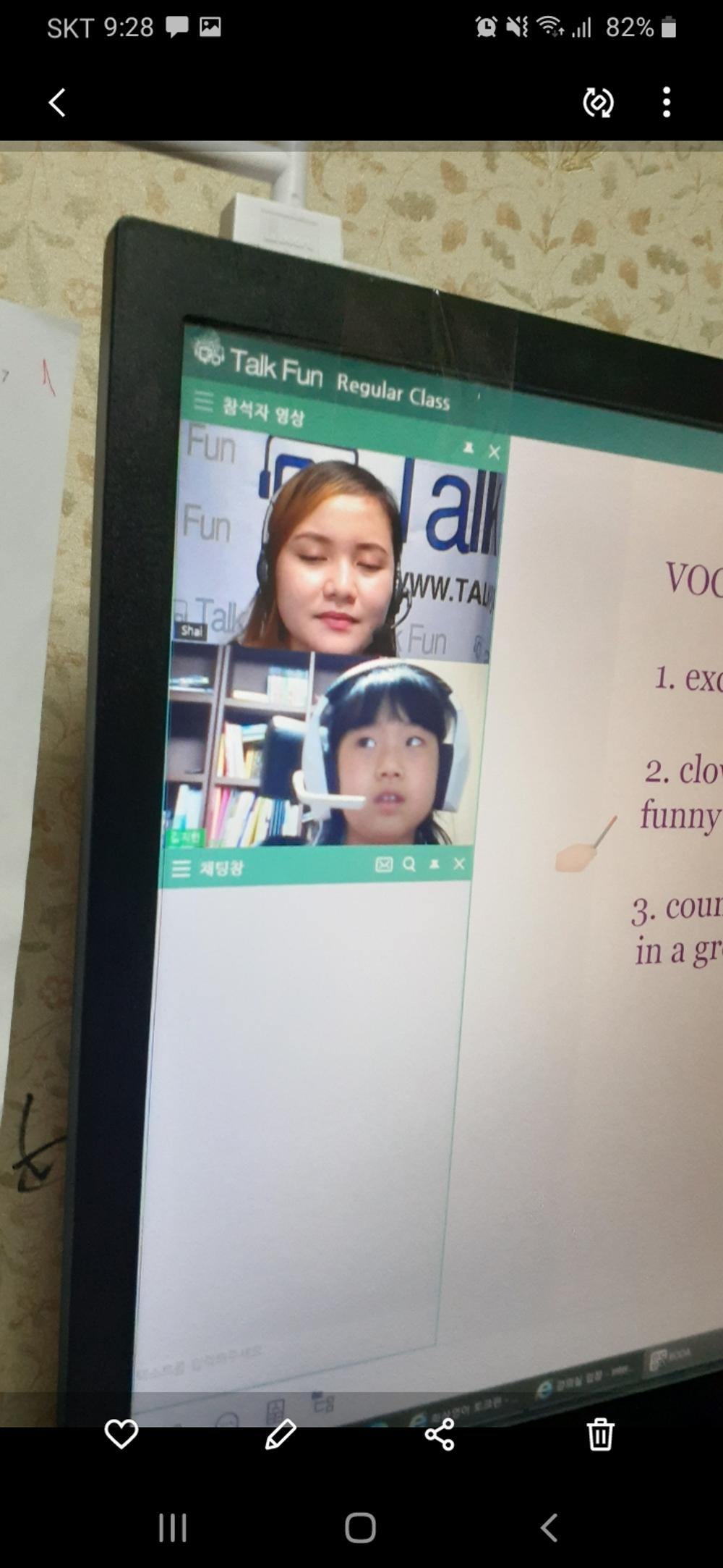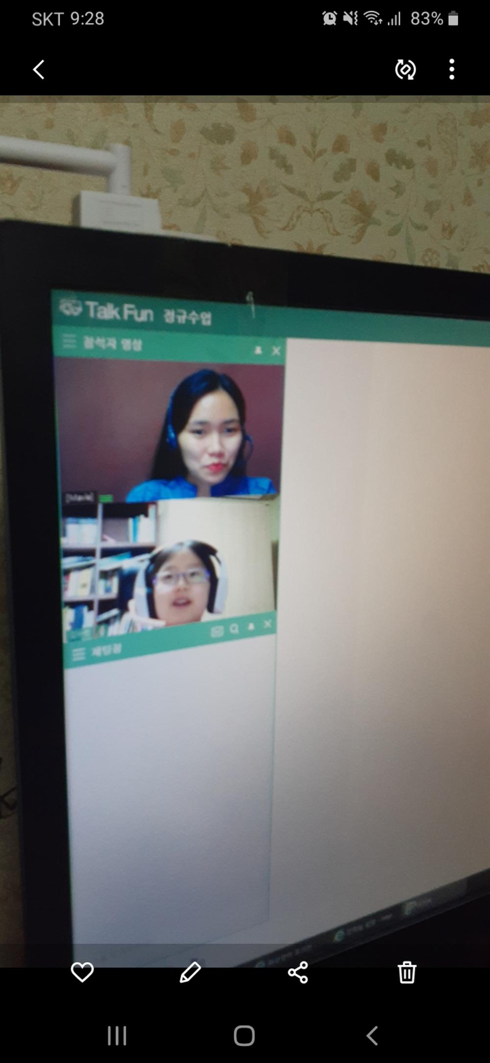 시간이 지나며 선생님과 친해지니 점점 재미를 느끼면서 하고 있습니다. 토크펀 하는날은 아침부터 시간체크 하면서 언제...