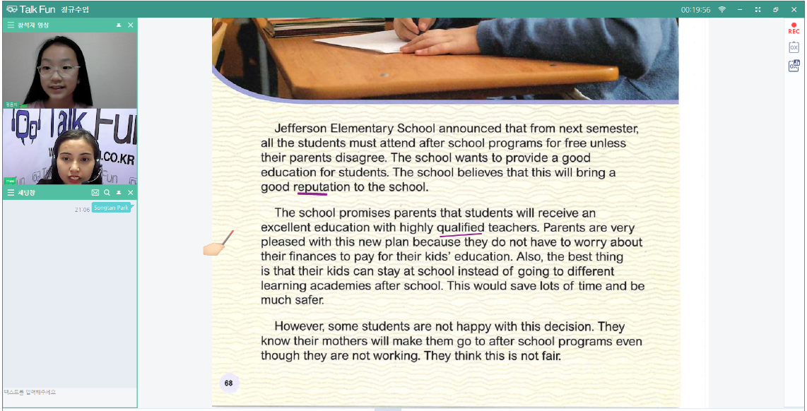 처음에는 어려울 것 같다고, 무섭다고 하더니 지금은 토크펀 수업시간을 매우 기다려요. 선생님이 했던 말을 더욱 신경이...