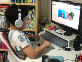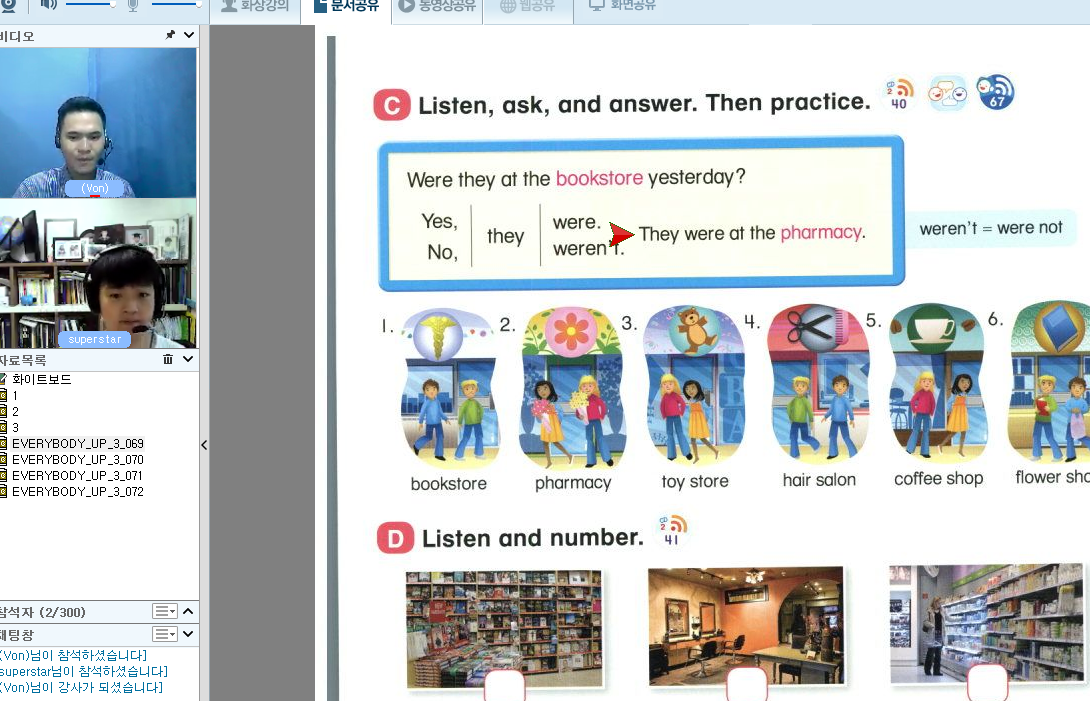 선생님과 웃으며 수업 잘하고 있습니다.. 선생님과 수업한 내용 복습하면서.. 본인이 선생님과 대화할때 너무 늦게 ...