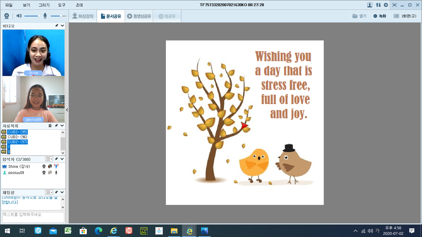 편도염수술을 여름방학동안 해야해서 토크펀 수업을 한달동안만 쉬려고 했는데 아이가 싫다네요 ㅎㅎ 그래서 5회정도만 수...