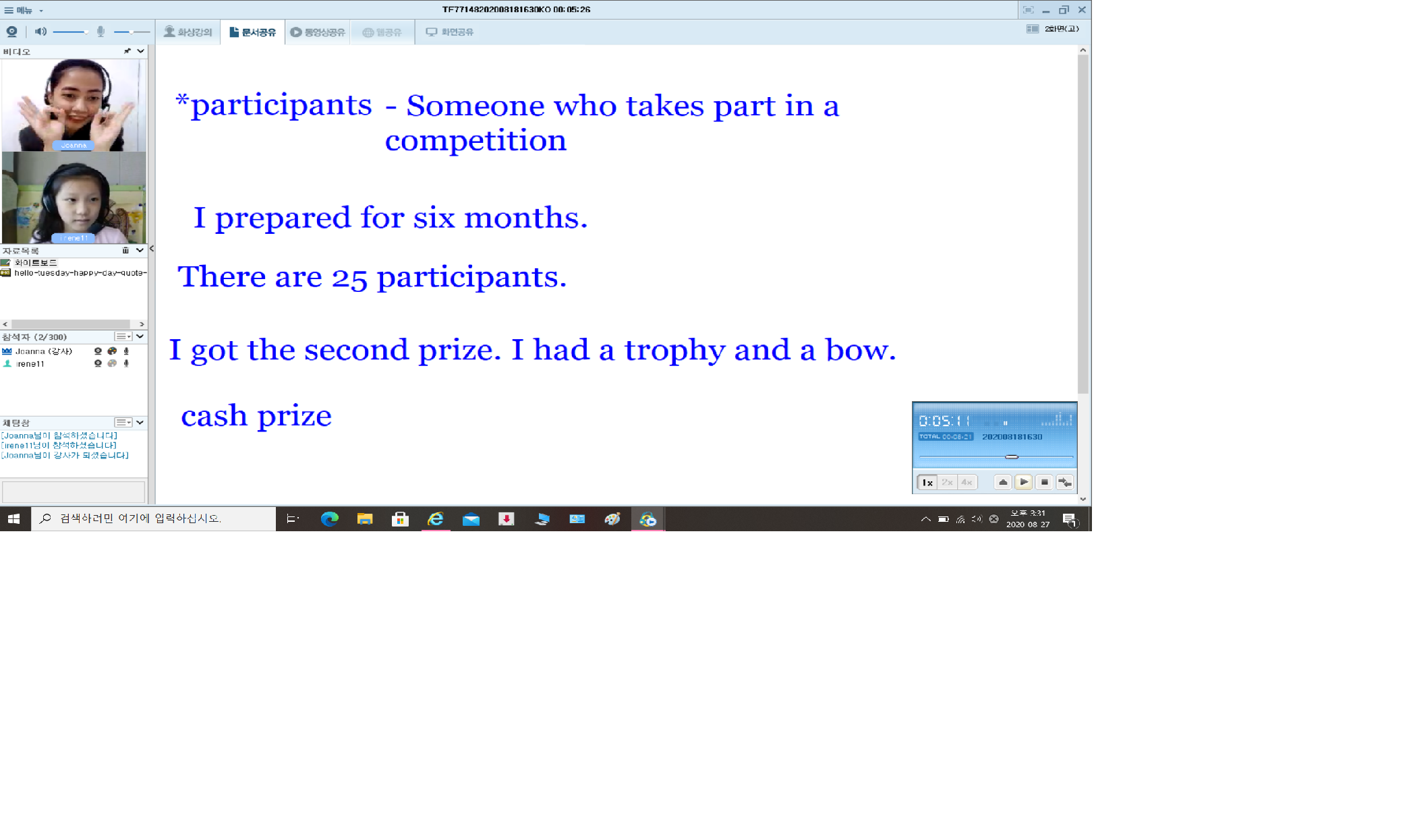 오늘도 토크펀과 함께해요 원래 수다스러운 아이라서 화상영어는 가벼운 마음으로 시작했는데 정말 많이 늘었어요. 선생...