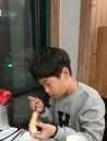 조금은 긴장하며 수업을 기다리고, 웃는 선생님을 보며 긴장이 풀려 웃으며 즐겁게 선생님과 수업하고 있습니다. 아직...