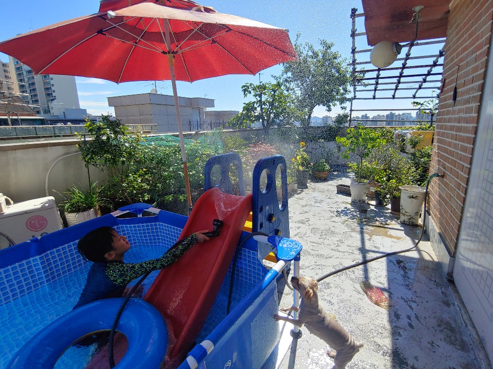 강아지 분양받은지 3년째 강아지 여름때마다 더워해서 강아지때문에 구입한 수영장도 3년째 강아지도 좋아하지만 둘째녀...