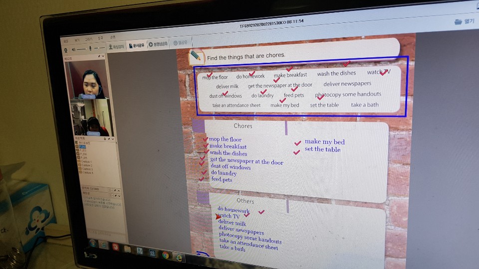 갑자기 집에 있는 노트북 카메라가 작동을 안해서ㅜㅜ 선생님 얼굴만 보고 수업했어요 아이 얼굴이 안나오는데도 선생...