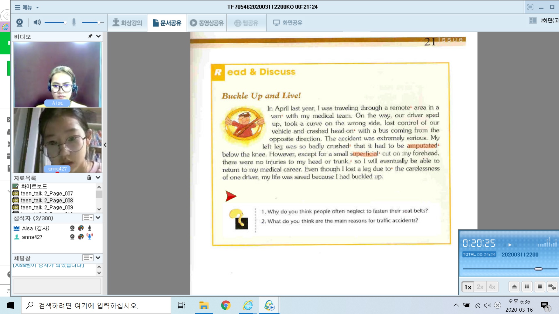 지금까지 뉴스아데믹으로 수업을 진행하다가 교재를 바꿨습니다. 새로운 교재로 수업한 첫날이라, 아직 어떤 수준이지, ...