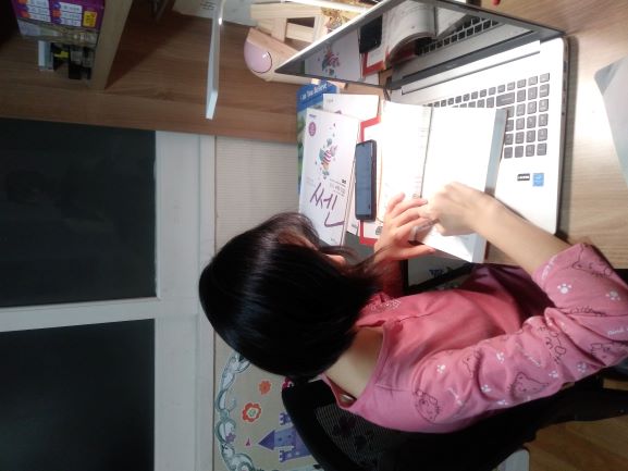 수업을 재미있어하는것 같아요^^ 가끔 피곤하면 누워서 하겠다 이불가져와서 하겠다는걸 뜯어말리느라 힘들지만 킴선생...