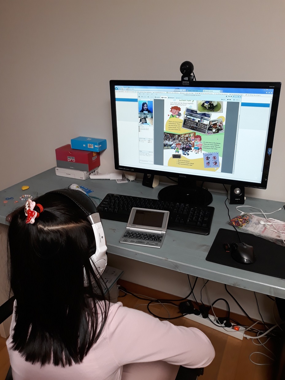 에브리바디 업이라는 교재를 가지고 영어 공부를 하다가 요즘은 뉴 칠드런스 토크 라는 스피킹 교재를 쓰는 것 ...