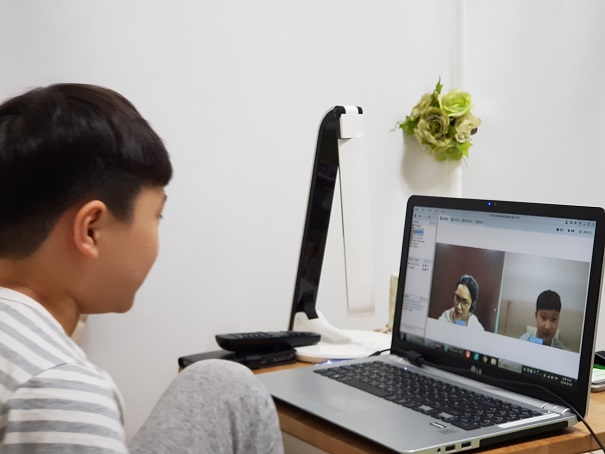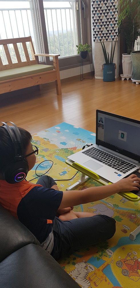 재미있게 수업에 참여하는 아들