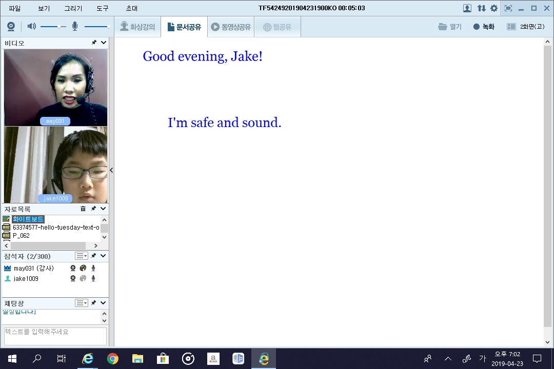 선생님과 화요일 목요일 1달 2달 ...... 수업하다 보니 영어도 예전 보다 훨씬 잘 하는 것 같고 재미있고 신...