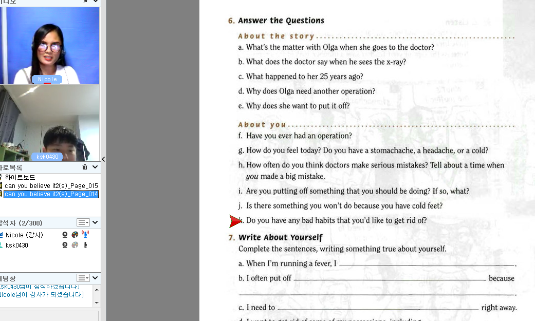 Nicole선생님과 즐거운 수업..