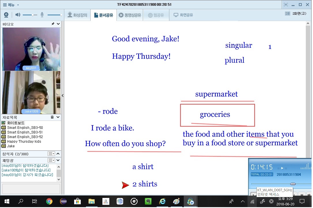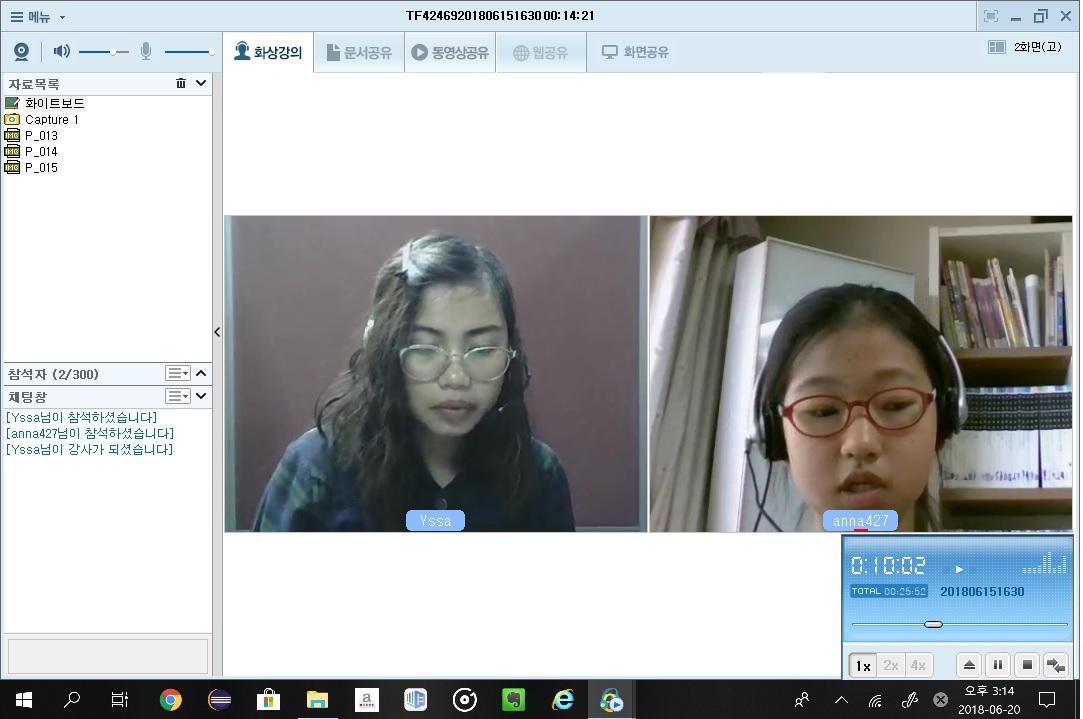 담당해 주시고 계신 aubrey선생님께서 좀 아프셔서 임시 강사님으로 Yessa선생님과 잠깐 수업을 진행했어요. ...