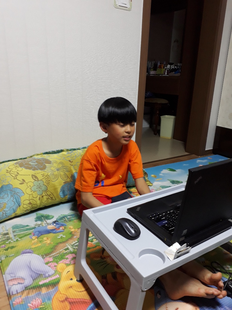 우리 로나샘때문에~ 강현이가 수업시간 지킬려고 격투기 학원 끝나자마자 전력질주 하면서 집에 뛰어옵니다. 로나 샘께 ...