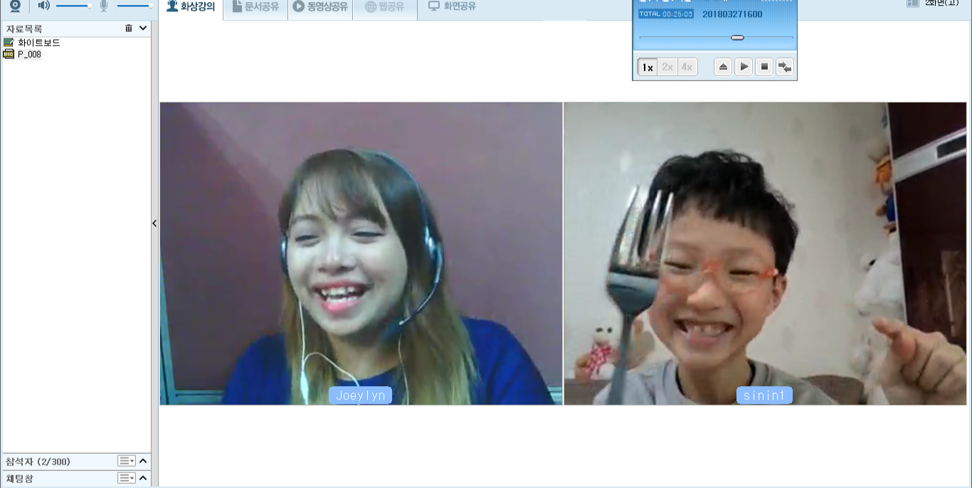 하루 일주 한달 두달 아이가 실력이 늘어가는 재미가 있네요~~^^ 옆에서 지켜보니 능숙하게 또 큰소리로 대화하는게 ...