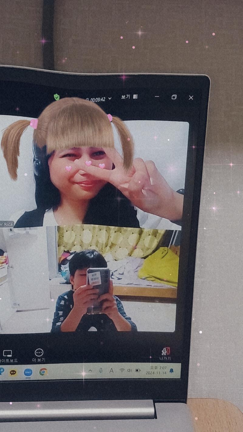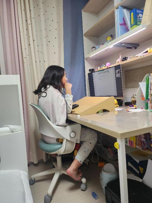 아이 핸드폰을 보다가 사진 한장을 찾게 되었네요 8살 시작무렵에는 혼자서 수업하는게 무섭다며 늘 옆에 있길 바랬는...