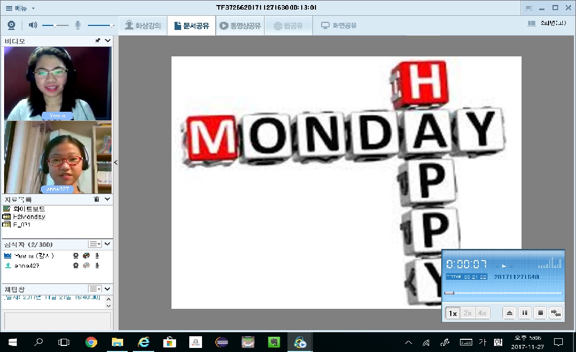 아침 일찍 일어나 서둘러 아침 먹고 7시 30분에 수업 진행하고 있는데 짜증한번 내지 않고 토크펀 수업 하고 있어 ...