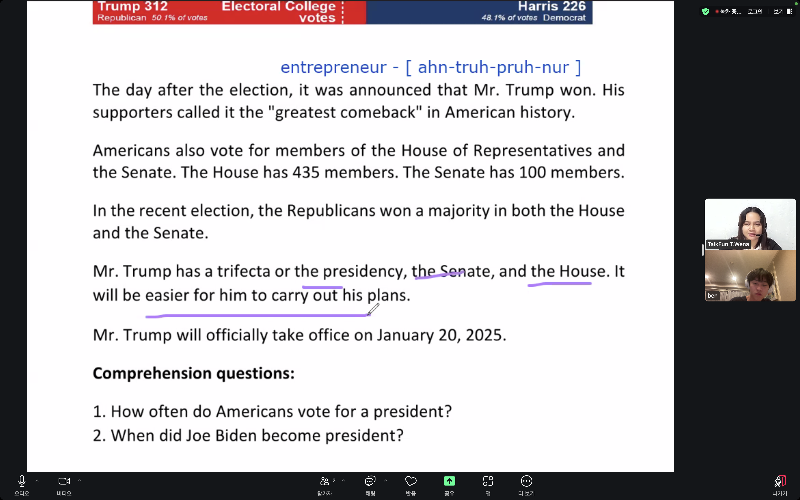 토크펀과의 수업은 2년 반 정도 진행하고 있고 체리 선생님과는 반 년 정도 진행하고 있습니다. 수업을 밖에서 듣다...