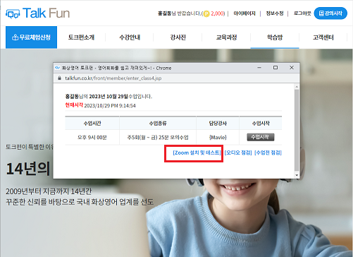 수업시작 및 점검등 토크펀에서 Zoom프로그램 수업을 위한 궁금증을 해결해 드립니다.