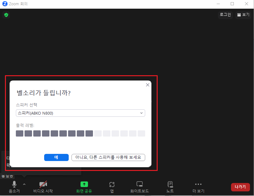 화면 가이드에 따라 소리, 마이크, 영상 등을 테스트합니다.